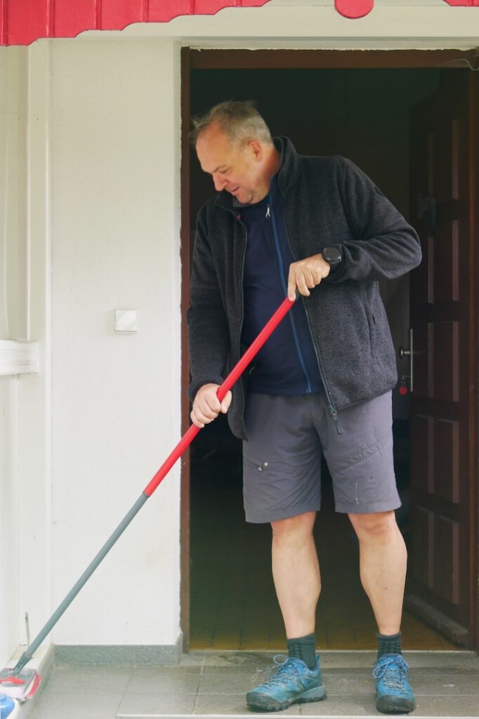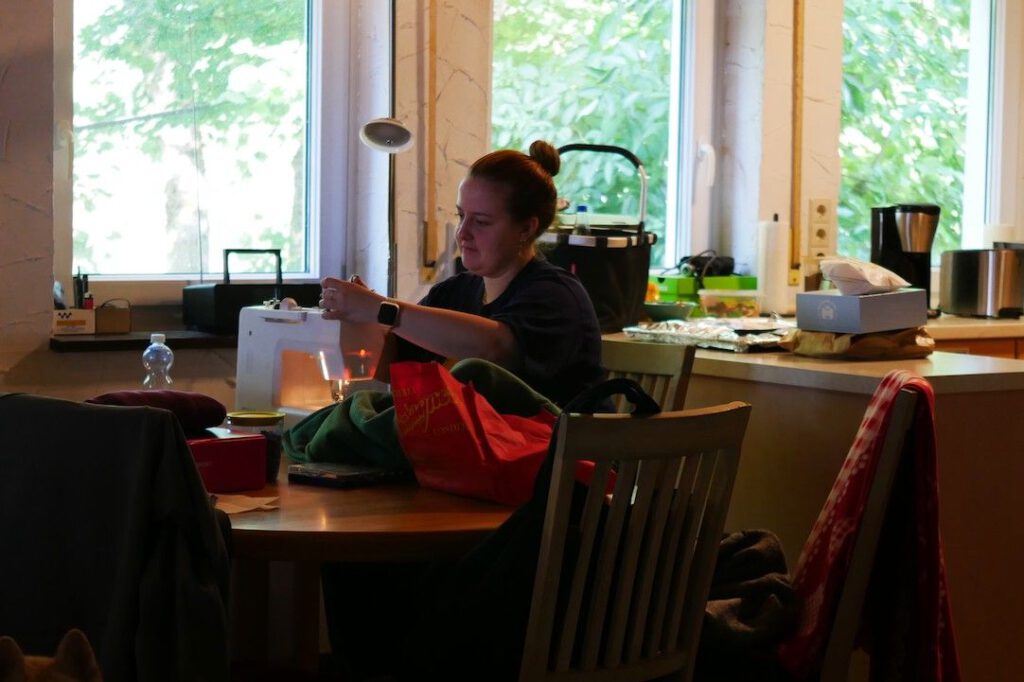 Beschäftigt sind wir immer. Dauerbrenner sind unter anderem: Putzen des Wohnungseingangs, im Kurgarten mähen und Hundedecken zurechtnähen.