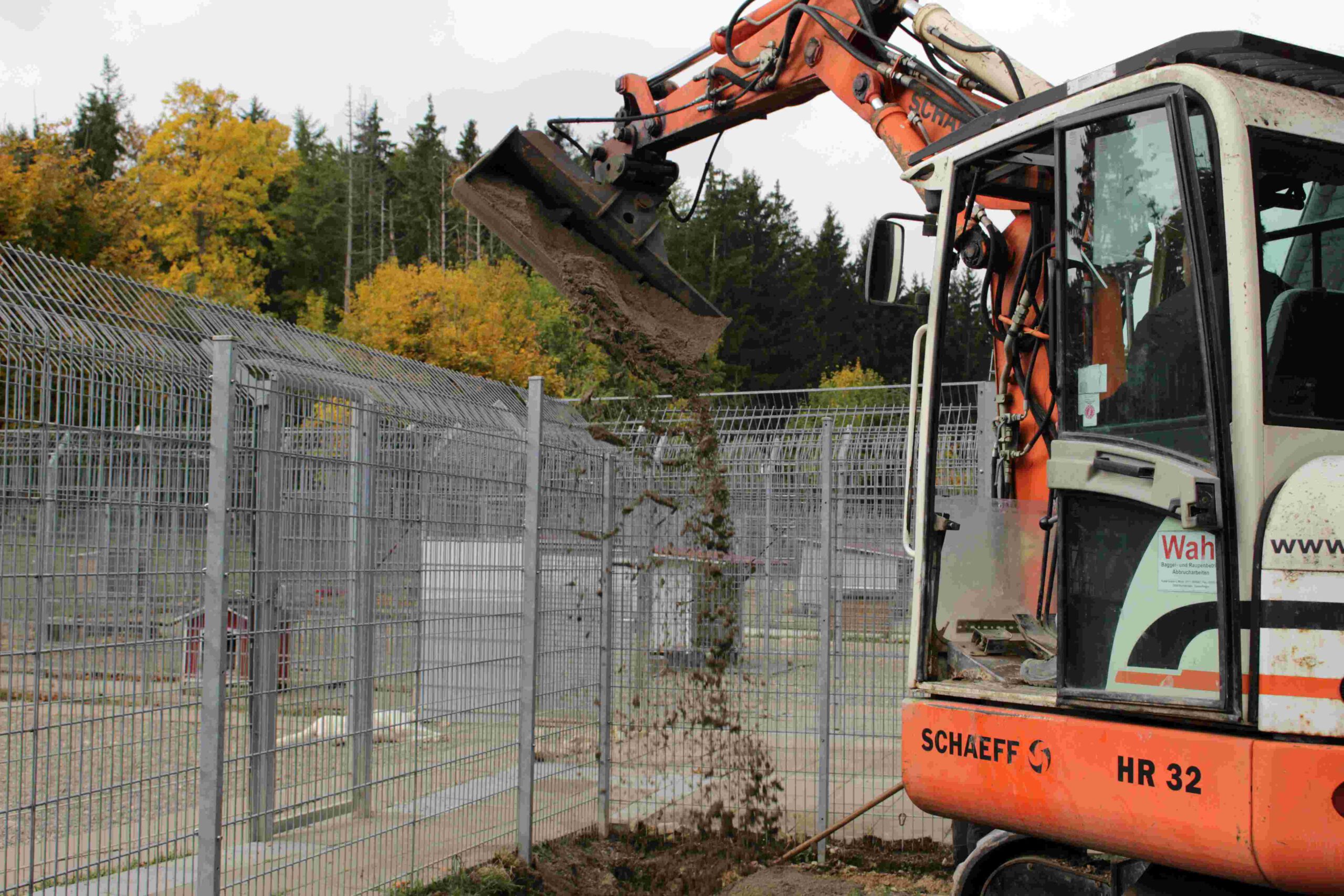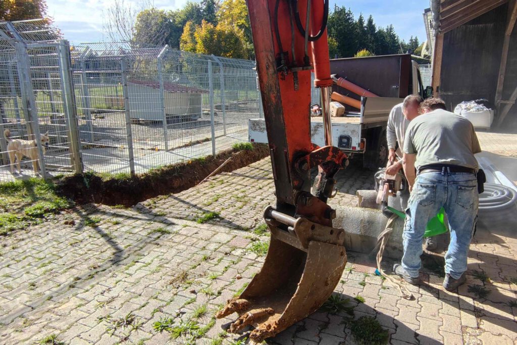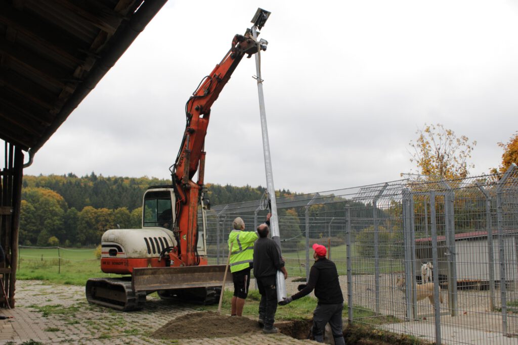 Die Zeitumstellung rückte immer näher. Erklärtes Ziel war, bis dahin die zusätzliche Gehege-Beleuchtung einschalten zu können. Ein Sondereinsatz unserer Elektriker war vom 8. – 11. Oktober geplant. Unterstützung durch Tiefbau-Experten war bereits ausgemacht. Zum Glück haben wir in der Nähe der Station eine entsprechende Firma.