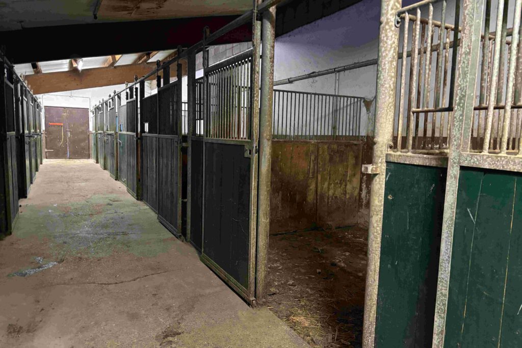 - Pferdeboxen reinigen und Splitt als Bodenbelag aufbringen; eine Box zusätzlich mit Palettenboden versehen, um das Elektromaterial trocken lagern zu können