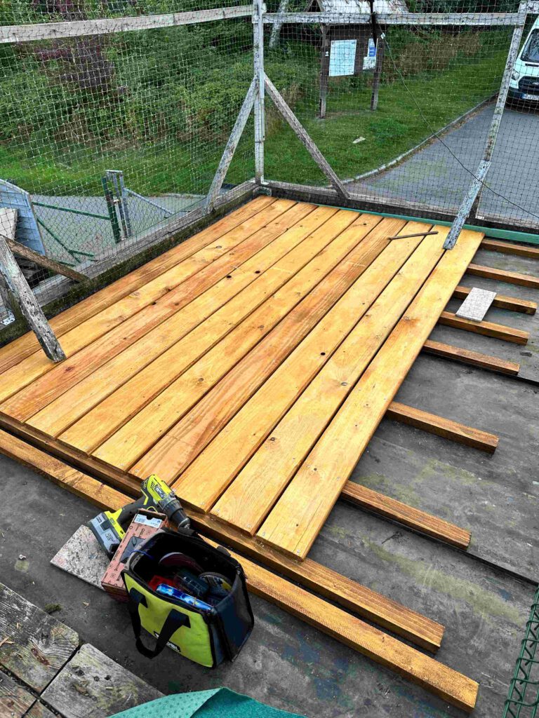 Da das Wetter in den letzten Wochen nicht immer mitgespielt hat, konnte ich nur phasenweise arbeiten. Aber Schritt für Schritt nahm alles wieder Form an – und jetzt ist es endlich so weit: Der neue Boden liegt, das Netz ist teilweise erneuert, und schon bald bekommt alles noch etwas frische Farbe. Auch die Katzenhäuser werden derzeit renoviert und teilweise ersetzt, damit sich meine Fellnasen rundum wohlfühlen können.