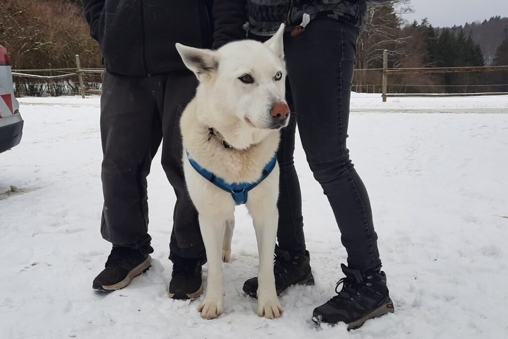 Ein Paar, das schon länger unsere Homepage besucht, zeigte Interesse an Fargo. Sie haben bereits Erfahrung mit Huskies und waren beim Kennenlernen angetan von seinem Wesen. Nach mehreren Besuchen durfte er Mitte Januar 2026 mit in sein neues Zuhause umsiedeln. Wir freuen uns sehr für Fargo und Familie M., dass sie sich bei uns gefunden haben. Die Voraussetzungen sind ideal, Fargo kann aufgrund des Arbeitsumfeldes seiner Menschen immer in der Nähe seiner Bezugspersonen sein.