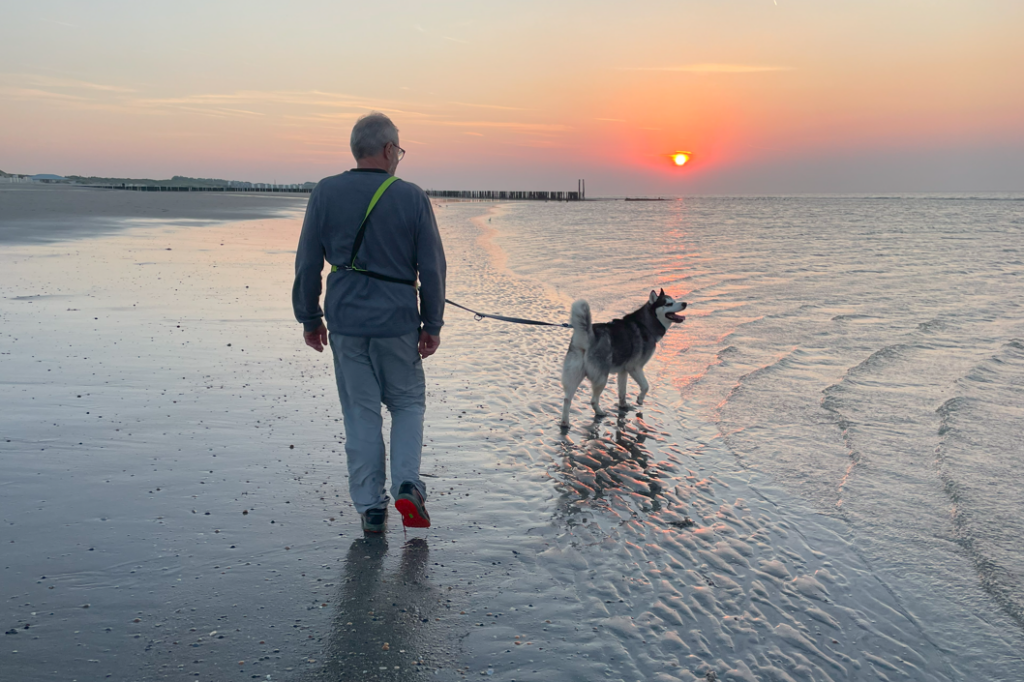 Wir haben mit der Zeit festgestellt, dass er bereitwillig längere Strecken geht, wenn er vorher Autofahren darf. Inzwischen geht es auch ohne Auto – wir sind ja flexibel. Hat er morgens mal keine Lust, gehen wir halt später in den Wald. Am besten klappt es, wenn alle mitgehen (E., K. und Nanouk).