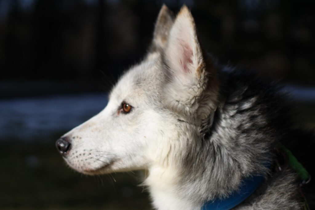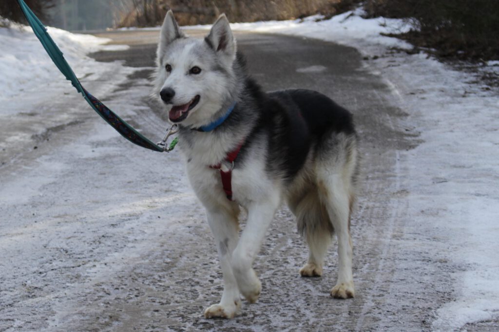 Samoset wurde Ende Dezember mit drei weiteren Hunden aus seinem früheren Zuhause bei uns untergebracht. Ihr Vorbesitzer musste sich von den Vieren aus privaten Gründen schweren Herzens trennen. Die Hunde wuchsen bei ihm auf einem großen Grundstück auf und wurden im Zughundesport unterrichtet.
