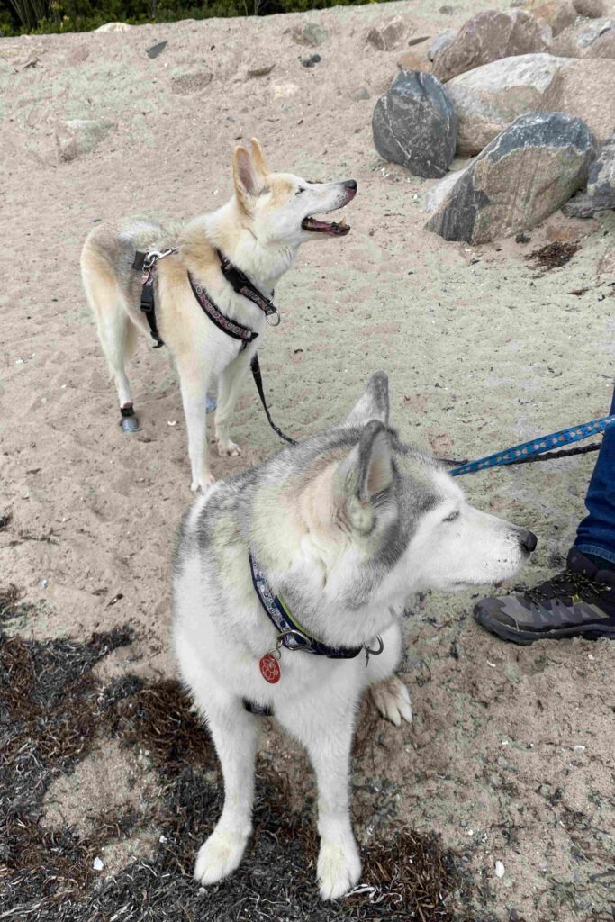 Im September letzten Jahres waren wir mal wieder auf Fehmarn und haben sehr die Zeit mit ihr und unserem Finn genossen, der mittlerweile schon sechszehn Jahre alt ist. Seinerzeit konnten wir mit Hilfe von Booties noch einige Runden drehen. Mittlerweile ist er gar nicht mehr gut auf den Beinen. Für eine halbe Stunde reicht es aber noch.